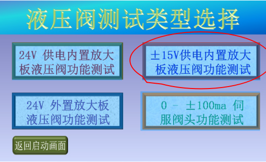 3、確認現(xiàn)場人員和設(shè)備安全后,點擊“進入測試”,進入液壓閥測試類型選擇畫面;