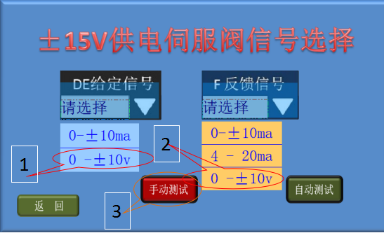 4、點擊“24V供電內(nèi)置放大板液壓閥功能測試”,進入?yún)?shù)設(shè)定畫面;